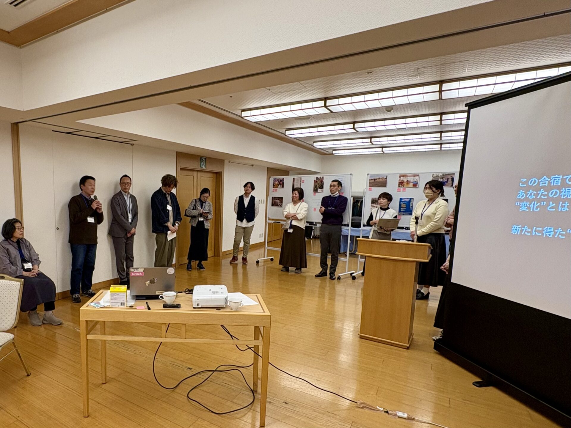 午後は全体の振り返りから始まり、研究協力者の松浦正浩教授(明治大学)、朱喜哲招へい准教授(大阪大学)、田村哲樹教授(名古屋大学)からのコメントの後、自由に議論を広げていきました。その後、初日のケアを考えるワークショップの振り返りを経て、参加者それぞれが合宿を通じて得た視点の変化や気づきを口頭で発表し、2日間の合宿を終えました。